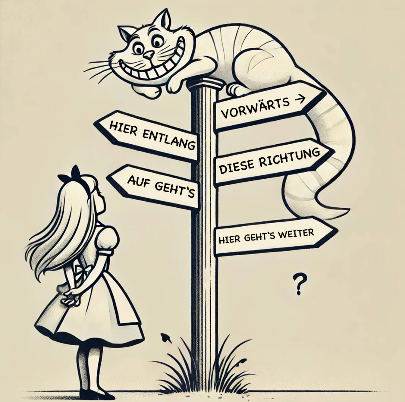 Diese berühmte Szene aus Alice im Wunderland ist mehr als nur ein amüsanter Dialog. Sie beschreibt ein Problem, das in Veränderungsprozessen nur allzu oft vorkommt: Fehlende Zielklarheit in der Change-Kommunikation.